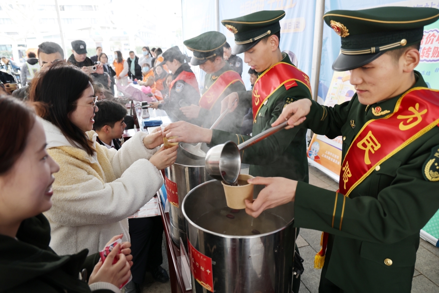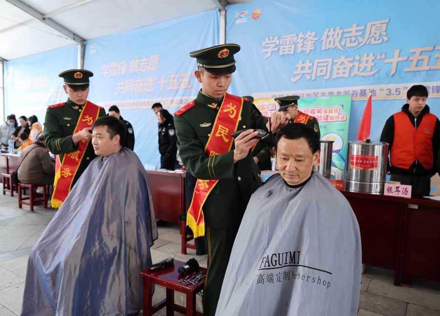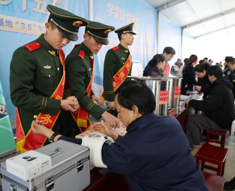 武警上海总队某部参与了此次志愿服务活动。官兵为市民量血压、义务理发、发放暖心热饮。
