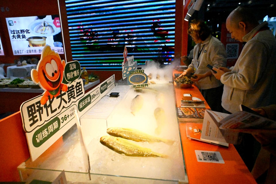 国内养殖企业带来的深海野化冰鲜大黄鱼 新民晚报 徐程 摄