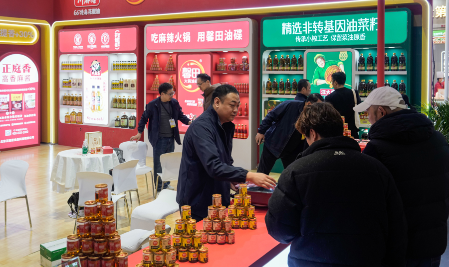 此外,作为展会调味展区的代表性参展企业,馨田集团聚焦餐饮调味赛道并深耕多年。本次展会其打造集产品展示、沉浸式味觉体验、商务洽谈于一体的特色展位,按四大品牌分区呈现,油碟、麻酱、菜籽油、花椒油等全规格产品悉数亮相。